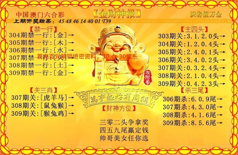 308期:发财五尾【4.6.7.8.9开:兔39中